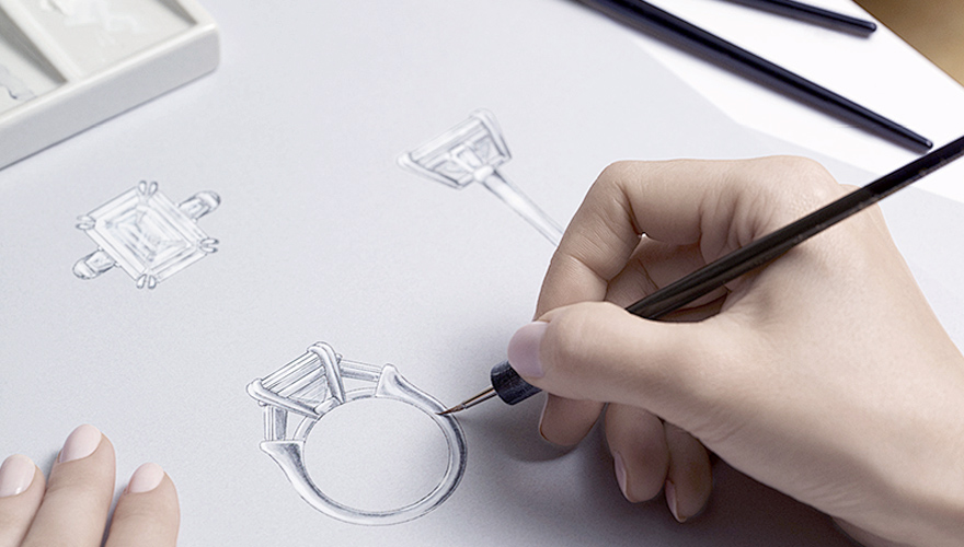 与定制顾问沟通,提取设计元素,体验手绘钻戒